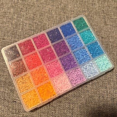 Perler til hobby og håndarbeid i to farger. Settet inneholder små plastperler i rosa og klar/transparent farge. Perlene kan brukes til ulike hobbyprosjekter som smykkelaging, dekorasjon, pynting av kort eller andre kreative aktiviteter. Passer for både barn og voksne som ønsker et utvalg av perler i matchende farger.
