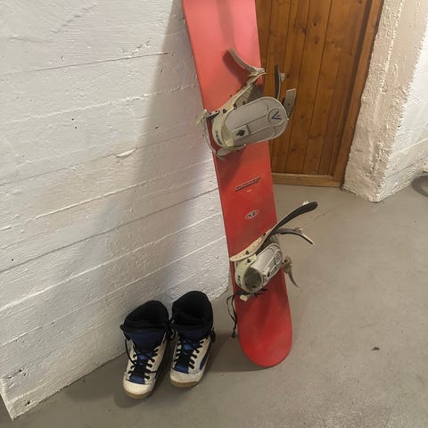 K2 Dart snowboard til salgs, 140cm. Bindinger medfølger. Brettet er 140cm langt, så det passer typisk best for personer 150-170cm. Klassisk, minimalistisk K2 design i beige og rødtoner. Et snowboard fra en av verdens mest anerkjente produsenter av snowboard og annet vintersportsutstyr. Se ellers bildene for detaljer.