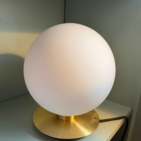 Den er dimbar via bryter på basen og bruker G9-lyskilde.