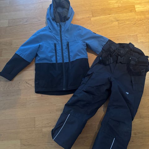 Mer brukt vattert skallbukse fra Bergans str 110. Synes den er stor i str. trenger en vask og tydelig brukt. Mangler fotstrikk under ene beinet. Mulig det er et hull som har blitt tapet.