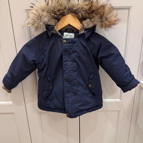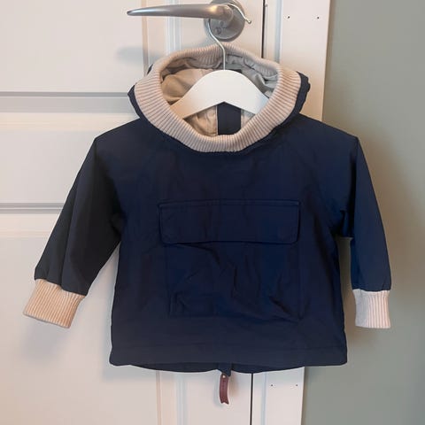 Utrolig søt allværsjakke fra Mini A Ture i str. 86 🫶 Perfekt til vår og høst. Har hatt flere av disse og vært veldig fornøyd. Pent brukt, men den har litt nupper på mansjettene, en løs tråd bak og merket bak har løsnet litt.