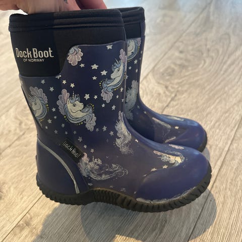 Godt brukt Dock Boot str 29 med enhjørning på. Ingen hull i støvlene. Men er synlig brukt