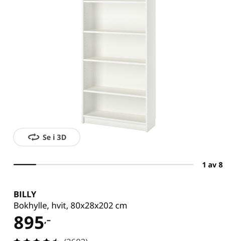 Billy bokhylle kjøpt i sommeren 2025.