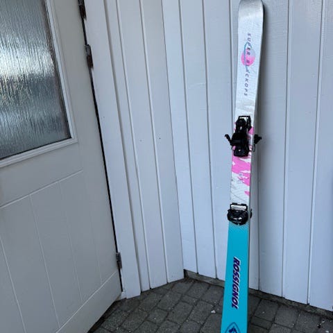 Rossignol Viper alpinski i lengde 154 cm. Skiene har mål 115-70-99 mm og radius 14 m, noe som gjør dem egnet som carvingski til preparerte løyper. Salomon bindinger. Ski utstyret er nesten som nytt, kun brukt en helg. Støvlene er tilpasset disse skiene.