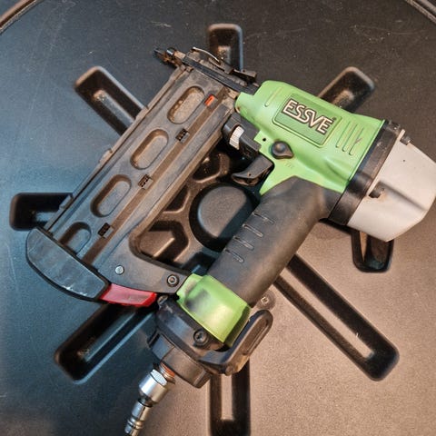 Endelig er husrenovering snart over. Pent brukt og velfungerende. Komplett koffert med to batterier, lader, briller etc. Følger med en uåpnet gasspatron og to åpnede. Selges som den er.