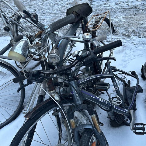 Hentes på Sørenga i Oslo, må trilles/kjøres da den ikke kan sykles på per nå.