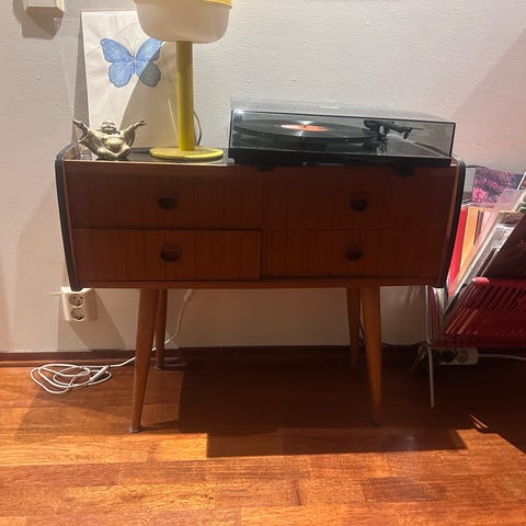 Skjenk fra Jysk med to dører og tre skuffer. Push-open funksjon.