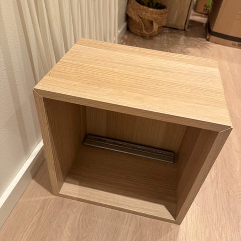 Bordet ser ut som eik, men det er ikke ekte heltre. Kjernen er nok av spon så det er forholdsvis lett.