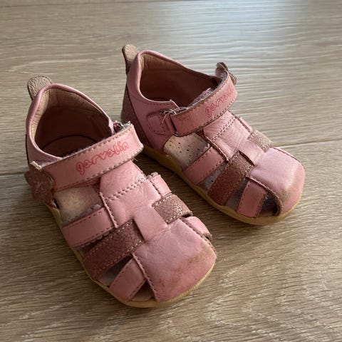 Rosa Kavat sandaler i skinn størrelse 28. Justerbare borrelåsstropper og åpen tå.
