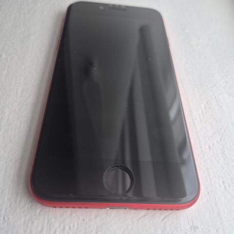 Apple iPhone SE (3 gen) smarttelefon med 64 GB lagringskapasitet. Modellen har kompakt design med hjem-knapp og Touch ID. Baksiden er i lys/hvit farge, og telefonen har enkeltkamera på baksiden.