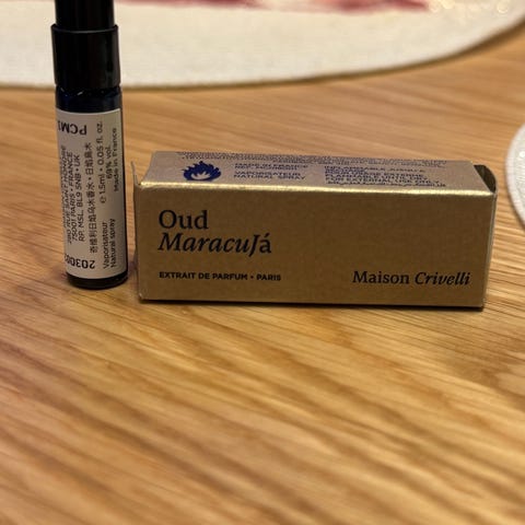 Original unisex parfyme 50ml Oud Maracuja Maison Crivelli. Testet en del, men fremstår nesten som ny.