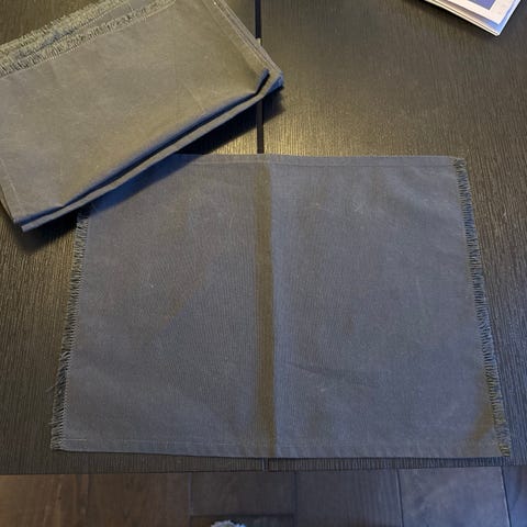 Jysk bordbrikker i svart farge imitert skinn. Rektangulær form, 32x41cm.