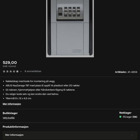 Innvendig er skapet utstyrt med flere justerbare hyller som gir fleksibel oppbevaring. Egner seg til sikker lagring av verdisaker, dokumenter og annet utstyr i bolig eller kontor. Materialet er stålkonstruksjon med lakkert overflate.