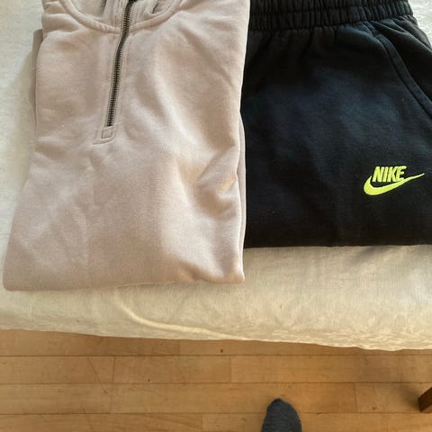 Trenger bukse og genser 122-128 og bukse og genser 140+. Jogge tøy. Begge i hvit. Gjerne med hette. Uten trykk.