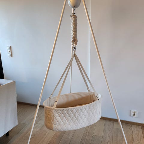 Motoren har støtte for blåtann, noe som gjør det enkelt å styre vuggen fra mobilen. Medfølger sengehimmel og kommer i original embalasje.