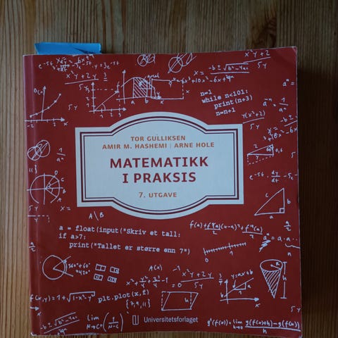 Universitetsforlaget Matematikk i praksis lærebok i matematikk og statistikk. Boken dekker praktisk bruk av matematikk med eksempler, oppgaver og forklaringer. Egner seg som lærebok eller støttebok i fag som omhandler matematikk og statistikk på videregående nivå eller tilsvarende. ISBN fremgår av innsidebildet.