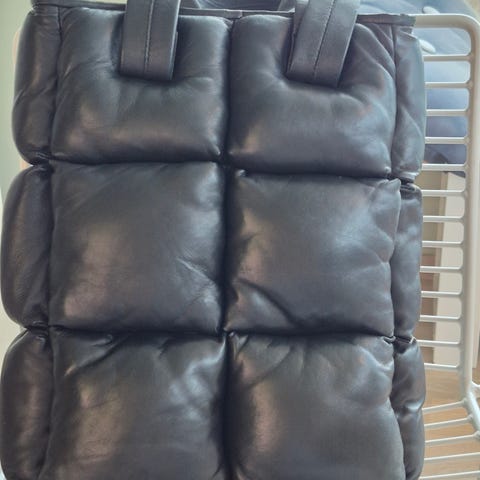 Bottega Venetta padded cassette ryggsekk i sort stoff. Kjøpt ny i 2021 for 2000 euro. Original kvittering og støvpose følger med.