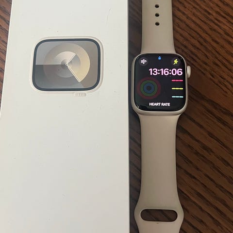 Apple Watch smartklokke i svart med silikonreim. Rektangulært urkasse-design med berøringsskjerm. Klokken leveres sammen med magnetisk ladekabel med USB‑C-tilkobling. Passer til bruk til varsler, aktivitet og hverdagsbruk når den er paret med kompatibel iPhone. Størrelse og spesifikk modellserie er ikke angitt.