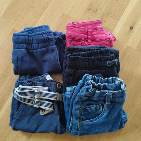 Stor klespakke 24 plagg med pent brukte klær i str 98/104. Gensere (tynn og vanlig), bukse, body, t-shirt, pysj, 2 sett🌸