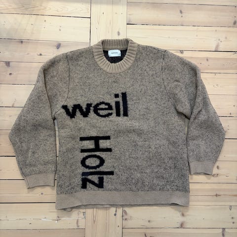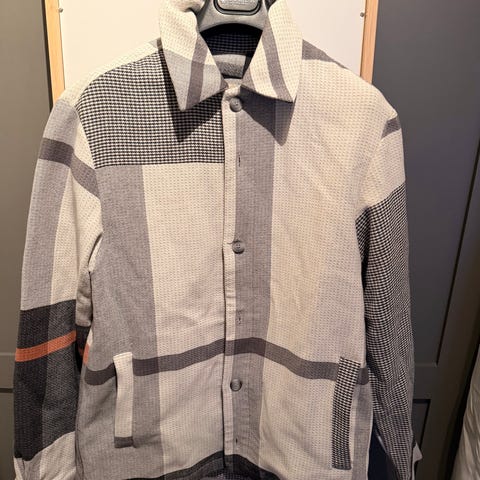 Holzweiler ulljakke for herre i størrelse L. Jakken er brun og laget i ull, med glidelås i front og høy ribbestrikket hals. Modellen har ribbestrikkede mansjetter og nederkant, samt Holzweiler-logo nede på fronten. Passer som varm og behagelig overdel til hverdagsbruk og lag-på-lag i kjøligere vær.