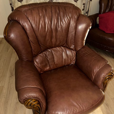 Den ene sofaen er uten skade og selges for 2500kr. De andre 2 og 3 seter er slitt litt hull på seg. Disse kan repareres. Kjøper du den ene skinnsofaen får du de to andre med på kjøpet.