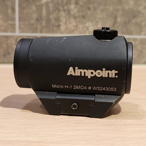 Aimpoint Micro H-2 rødpunktsikte i svart utførelse. Kompakt optisk sikte med rødpunkt, står på Blaser skinne. Leveres med linsebeskyttere og verktøy som vist på bildene. Siktet har justerbare innstillinger for rødpunktet og er konstruert for robust bruk. Passer til jakt og skyting der rask måloppdagelse er ønsket.