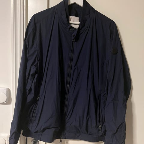 Armani Jeans jakke for herre i størrelse L. Jakken er blå og laget i polyester. Den har hette med snøring, glidelåslukking foran og sidelommer. Ribbekant nederst og ved ermer for bedre passform. Diskré Armani Jeans-logo på ermet. Egner seg som lett ytterjakke i hverdagen.