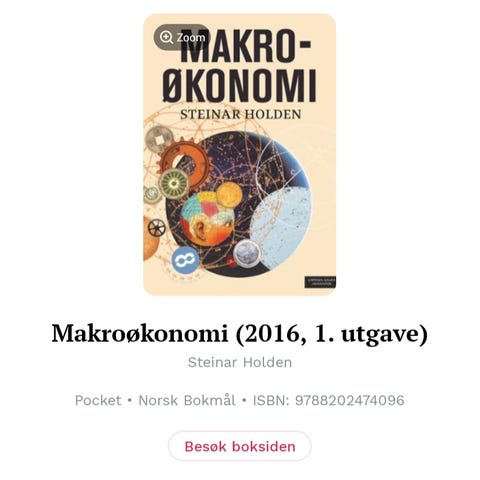 Makroøkonomi av Steinar Holden selges. Boken er godt brukt og har markeringer, men fungerer til sitt formål:)