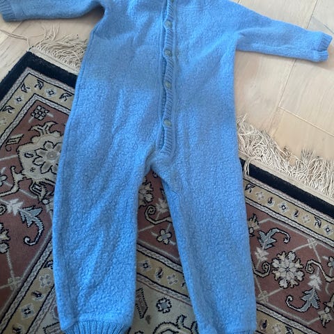 Heldress fra Joha 80 cm. 85 % merinoull og 15 % silke. Noe misfarging på ermene.