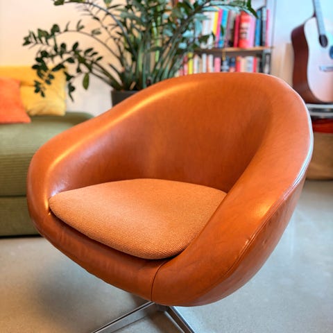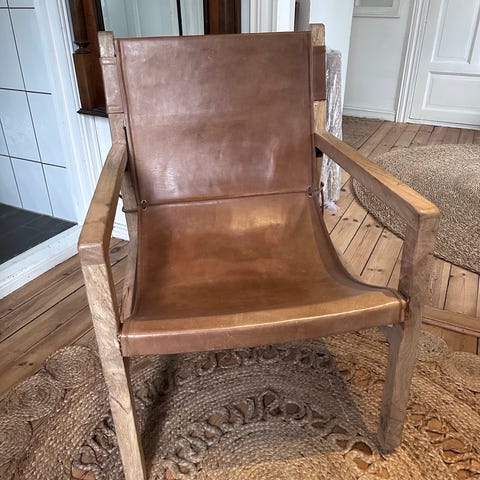 Stolen er i veldig god stand, men har noen nupper i skinnet etter at katten har kosa seg i den (se bilde), derfor redusert pris.