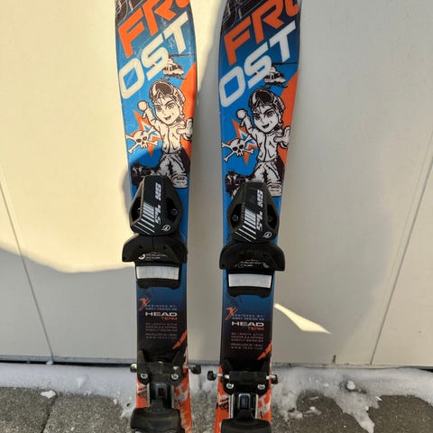 Head Frost barneski med bindinger. Passer til alpint for barn, brukt fra ca 3-6år her i huset.