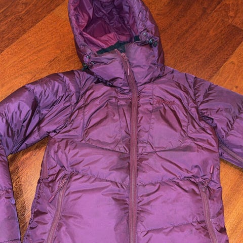 Stormberg dunjakke for dame i størrelse XL. Jakken er burgunder, og fylt med dun. Den har hette med borrelås stramming på ermer og på hetta, gjennomgående glidelås i front og to lommer med glidelås i sidene, og ei innerlomme. Modellen har Stormberg-logo på brystet og innvendig merking med IsoFrost-teknologi. Egnet som ytterjakke i kaldere vær.