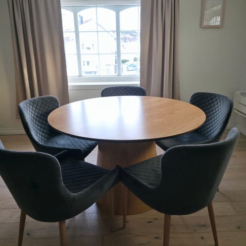 Fin rund spisestue med extra innlegg plate.
