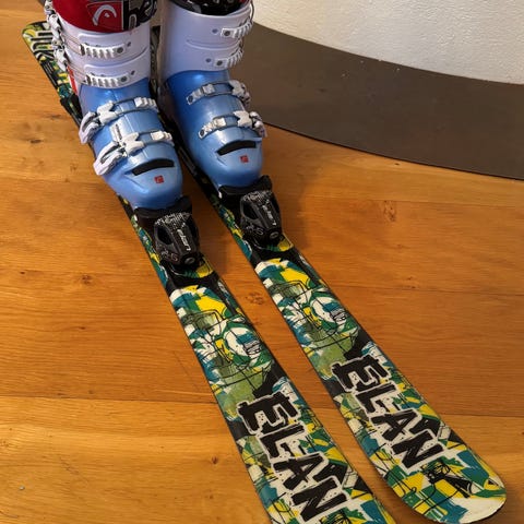 Elan alpin ski 110 cm og Roxa alpinstøvler str 180-215 barn svart og hvit