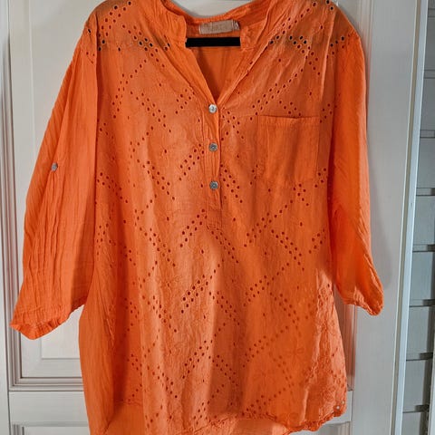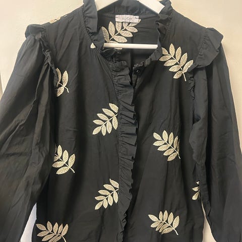 Skjorte/bluse fra Sorbet med nydelige detaljer. Størrelsen er en S, men denne passer bedre en M. Vil ikke sitte stramt/tett i M. 100% bomull og en nydelig og myk kvalitet. Brukt maks 1-2 ganger og fremstår som ny🧡