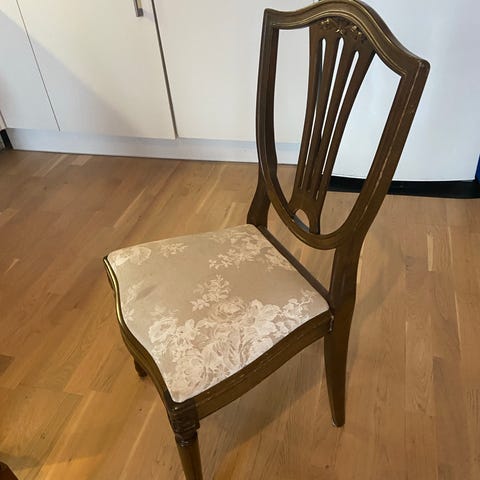 Stolen er hel og stødig, med normale bruksspor. Passer fint som ekstra stol til kjøkken, kontor, hobbyrom eller studentbolig.