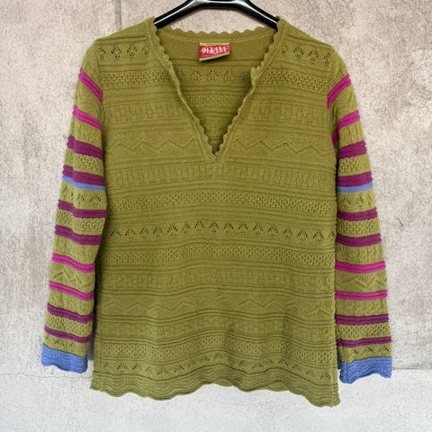 Svært pent brukt. To lillafarger, søte detaljer langs krage og ermer. Produsert i myk merinoull og silke.