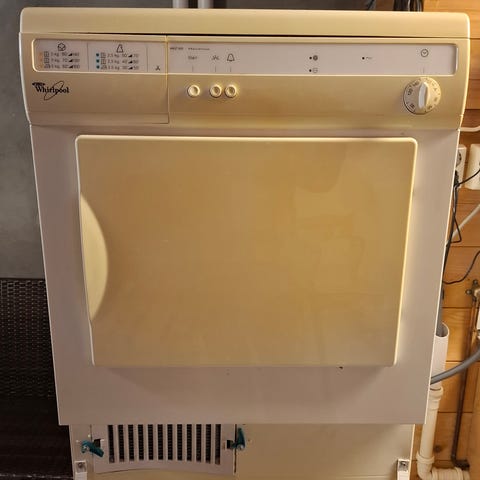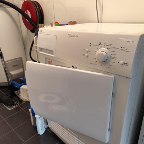 Tørketrommel fra slutten av 1980-tallet. Ingen elektronikk, kun knapper og brytere. Svært enkel i bruk. Lofilter bak dør. Fleksibel slange for damp fra trommel ut gjennom ventil i vegg. Fantastisk driftssikker. Har aldri vært en eneste feil på denne. Har kun brukt trommelen 2-3 ganger i året de siste 20 år pga. at denne står på et gjestebad og jeg har en mer moderne tørketrommel på vaskerom. Kan hentes snarest mulig (sendes ikke).