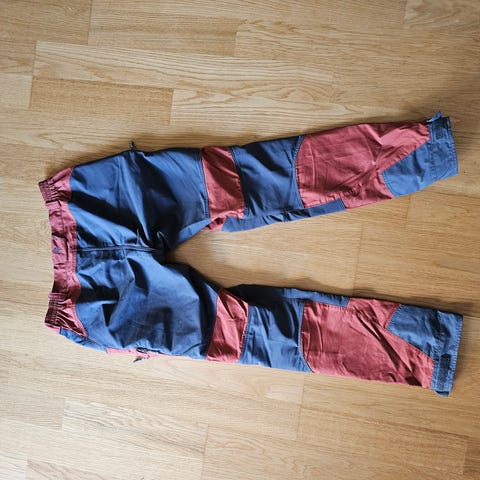 Nydelig turbukse fra Chevalier i fargene red/dark olive, selges. Rødfargen på bildene lyver litt, den er mørkere enn det vises på bildene. Stretcpaneler og luftespalter med glidelås. Flott bukse for aktivt friluftsliv! Framstår omtrent som ny.