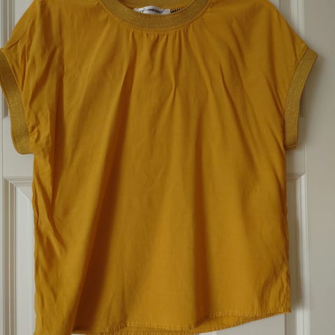 Detaljer: Bluse i enkelt snitt, med puffermer/skulder. Blusen er litt skinnende i stoffet.