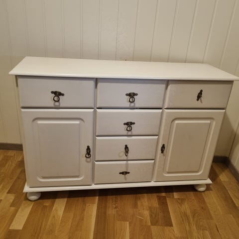 TV benk i hvit høyglans som er svært pent brukt. Kraftig materiale og mye oppbevaring