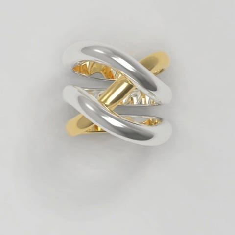 Ringen har det klassiske flettede Bismarck-designet .