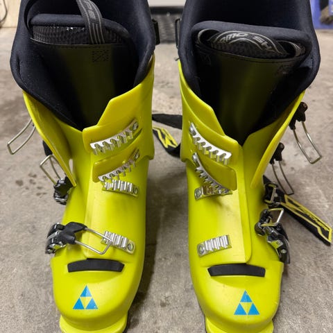 Fischer Race alpinstøvler / slalomstøvler i svart med hvite detaljer. Støvlene har fire spenner og powerstrap øverst for justering og tilpasning. Sålelengden er merket 240–245. Modellen har hard ytterskall og polstret innerstøvel for støtte og komfort. Passer til vanlig alpinbruk i standard alpinbindinger.