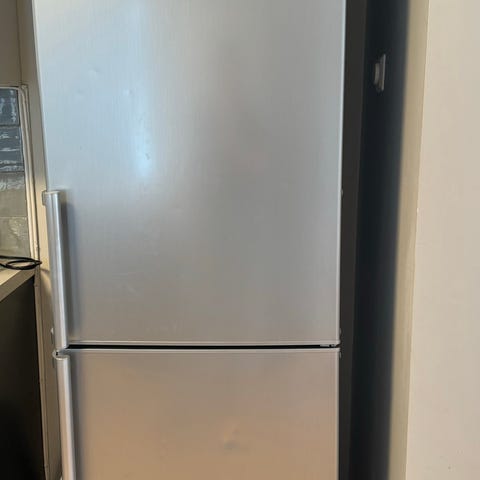 Bosch kombiskap kjøl/frys i stålfinish. Kjøledelen har flere justerbare glasshyller, dørhyller og en MultiBox-skuff for oppbevaring av frukt og grønnsaker. Frysedelen nederst har tre skuffer for organisert lagring av frossenmat. Egnet som frittstående kombiskap på kjøkken eller i bod, med separat kjøle- og frysedel i ett apparat.