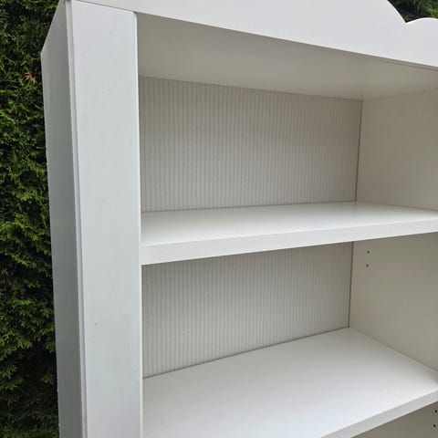 Brukt i klasserom - hele og pene, men bruksskader som bl.a små malingsflekker i den ene hylla. Hylla kan snus og da er det fin.