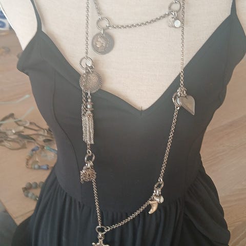 Langt kjede med sorte stener
