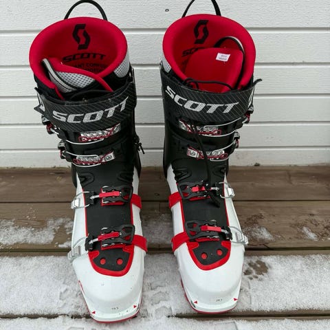 Modellen har fire spenner og kraftig stropp øverst for god justering rundt leggen. Yttersålen har grovt Vibram-mønster som gir godt feste ved gange. Støvlene er merket «Made in Italy». Egner seg til bruk med kompatible alpin- eller toppturbindinger, avhengig av bindingstype og sålens standard. Passer breiere fot, størrelsen er 26,5. Skoene blei dessverre for store til meg. Men det er god støtte nedover og heilt ok oppover. Brukt ett par turer.