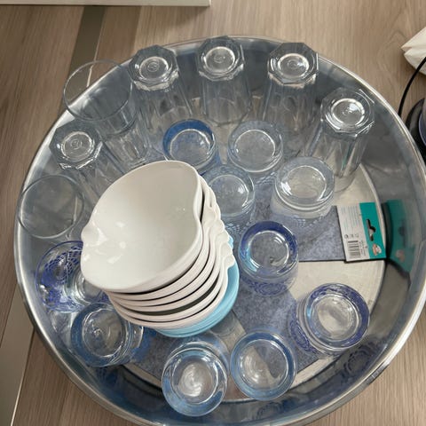 6 stk. Glasshyller til kjøkken, merket med «Safety Glass – IKEA of Sweden», som indikerer at det er laget i herdet sikkerhetsglass.