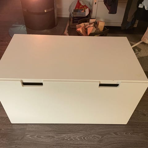 Romslig og praktisk oppbevaringsskuff fra IKEA. Mål ca 1 m lengde, 60 cm bredde og skuff ca 50 cm dyp. Ideell til barnerom.