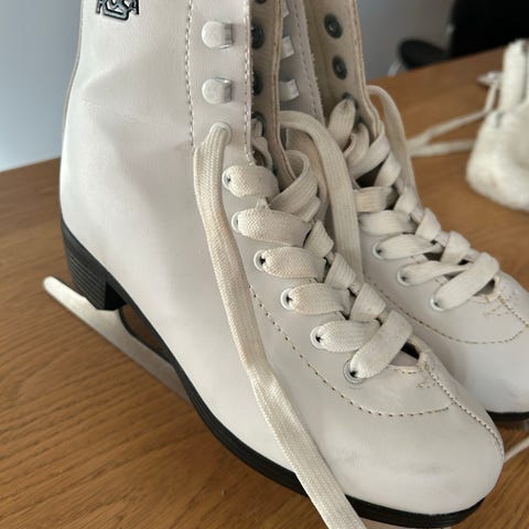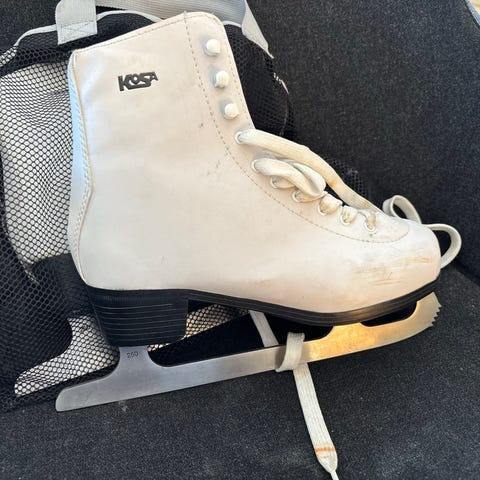 Kosa kunstløpskøyter i hvit farge. Lite brukt. Med isolerende overtrekk